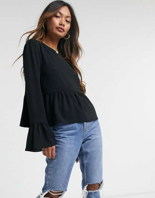 ASOS DESIGN long sleeve smock top in black