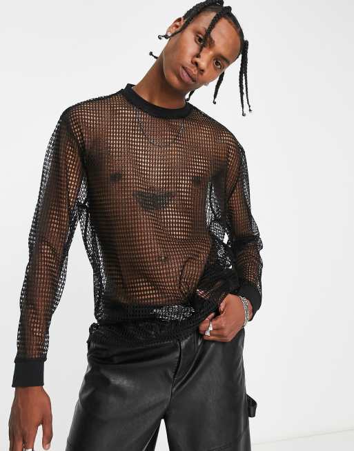 ASOS DESIGN long sleeve t-shirt in metallic mesh