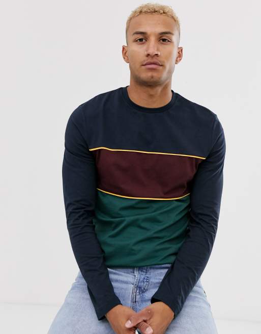 ASOS DESIGN long sleeve t-shirt with colour block in navy