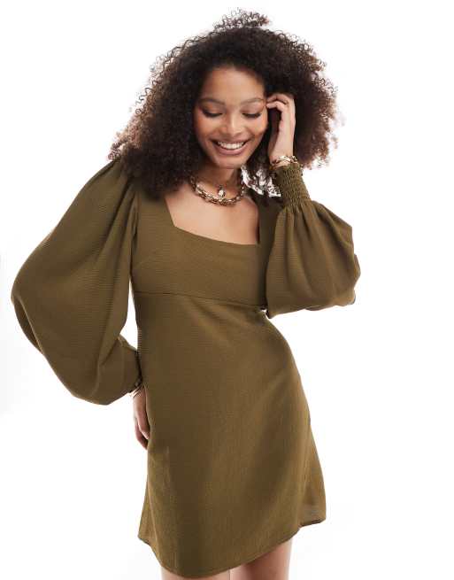 ASOS DESIGN long sleeve tie back mini dress in khaki