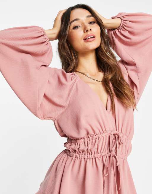 ASOS DESIGN long sleeve v neck top with kimono sleeve and tie front in soft rose