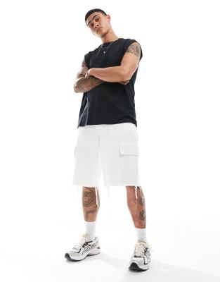 ASOS DESIGN longer length denim jorts with cargo detail and raw hem in white