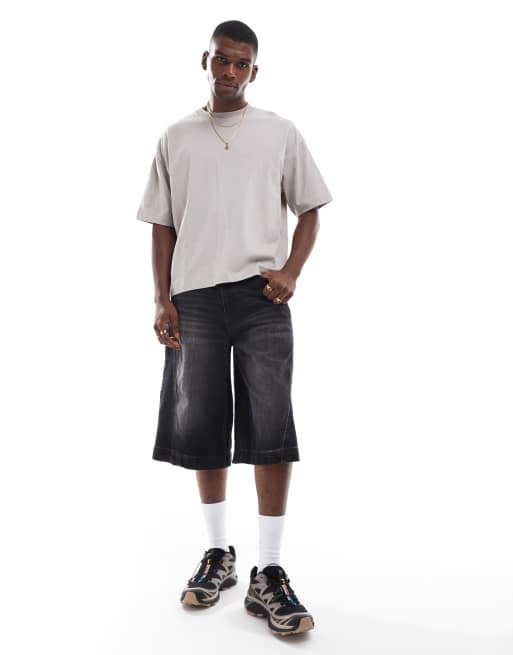 ASOS DESIGN longer length denim jorts with twisted seam in black wash