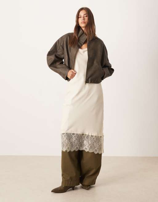 ASOS DESIGN longline cami slip dress with lace trim in cream