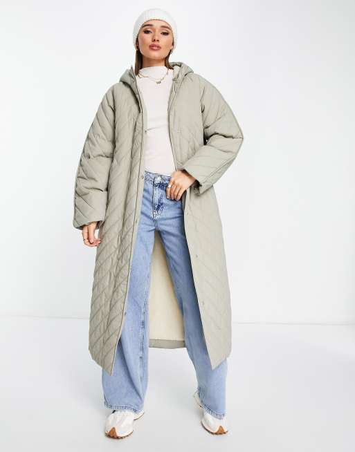 ASOS DESIGN longline chevron quilted jacket with borg lining in stone