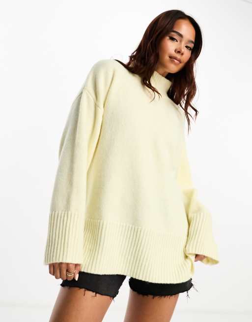 ASOS DESIGN longline jumper with high neck in butter yellow