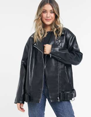 ASOS DESIGN longline oversized faux leather biker jacket in black