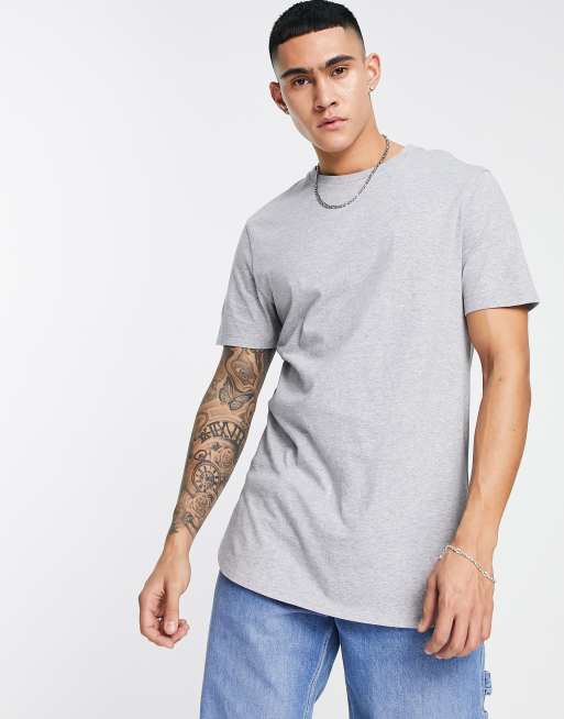 ASOS DESIGN longline t-shirt with sides splits in grey marl