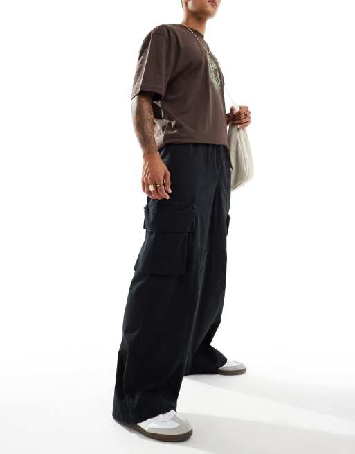 ASOS DESIGN loose cargo trouser with panel details in black