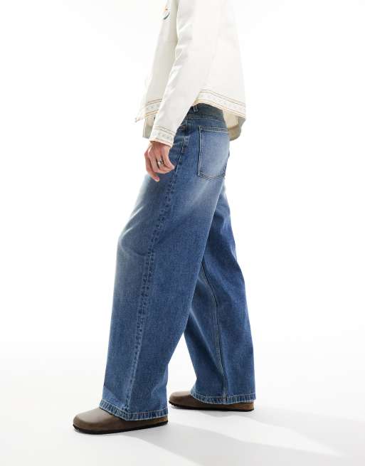 ASOS DESIGN loose jeans in mid wash blue