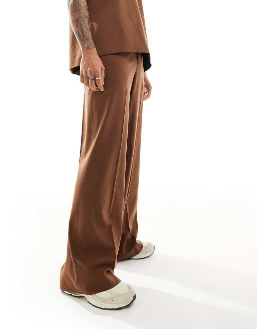 ASOS DESIGN loose leg suit trousers in chocolate brown