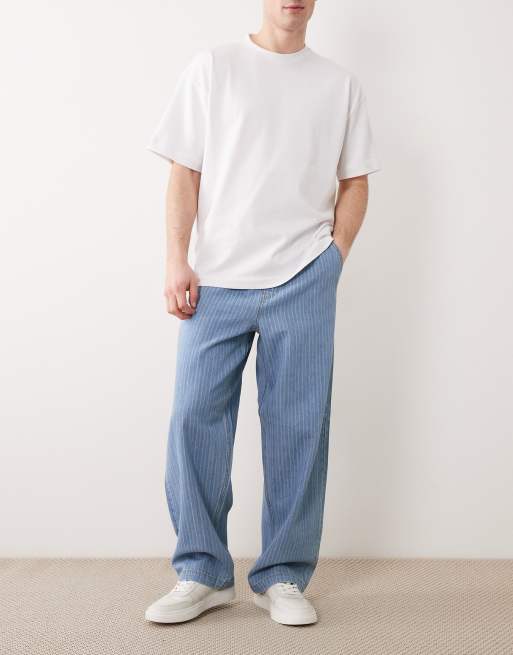 ASOS DESIGN loose straight lightweight jeans in blue and white stripe