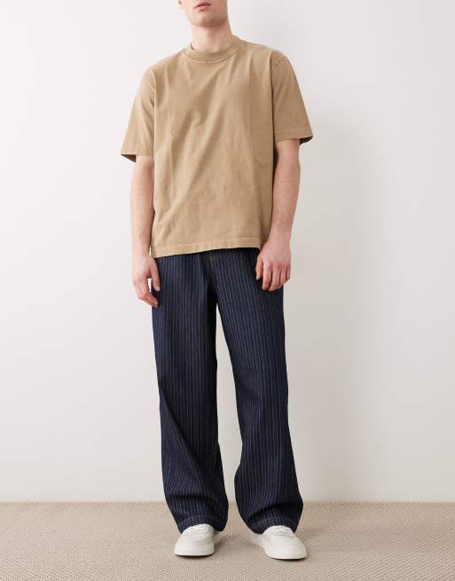 ASOS DESIGN loose straight lightweight jeans in dark blue and white stripe