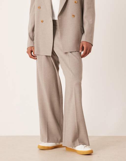 ASOS DESIGN loose suit trousers in beige flannel