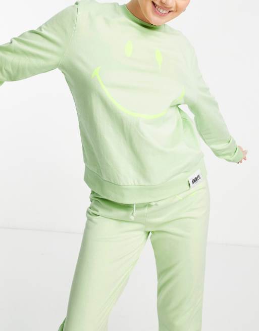 ASOS DESIGN lounge co-ord Smiley sweat in lime