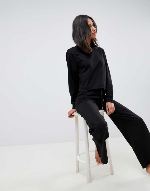 ASOS DESIGN Lounge cross back open sweat top & wide leg palazzo trousers