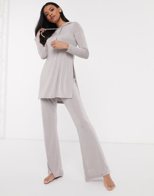 ASOS DESIGN lounge mix & match slinky hoodie and flared trouser set