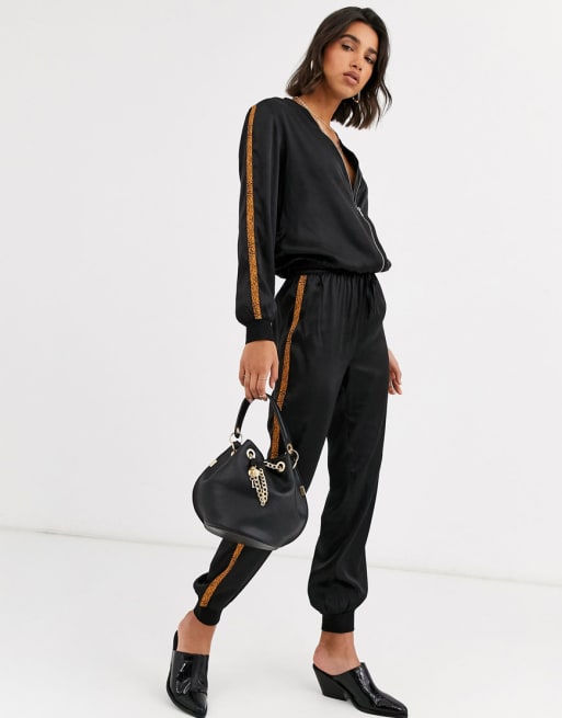ASOS DESIGN lounge premium satin animal tape bomber jacket & jogger