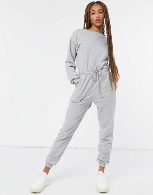 ASOS DESIGN lounge sweat jogger jumpsuit in grey marl