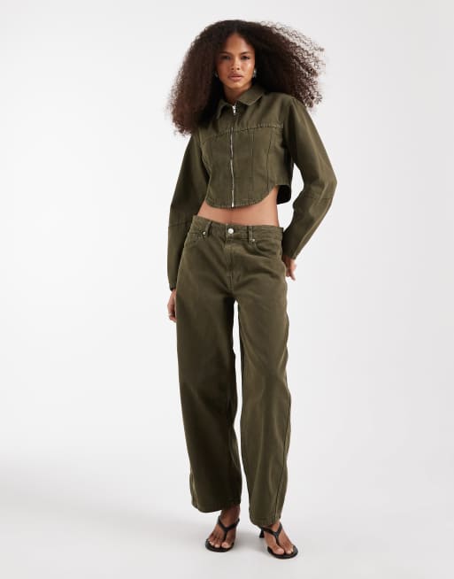 ASOS DESIGN low rise barrel jeans & denim corset top in khaki