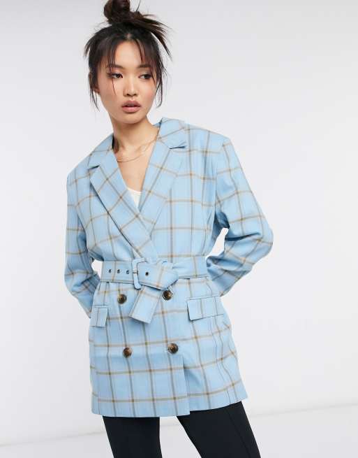 ASOS DESIGN mansy double breasted suit blazer in blue grid check
