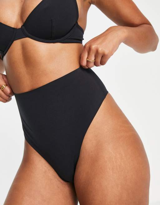 ASOS DESIGN Marina polyamide blend smoothing high-waist thong in black