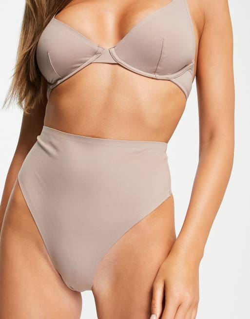 ASOS DESIGN Marina polyamide blend smoothing high-waist thong in mink