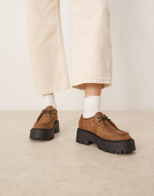 ASOS DESIGN Marley lace up flat shoes in taupe suedette