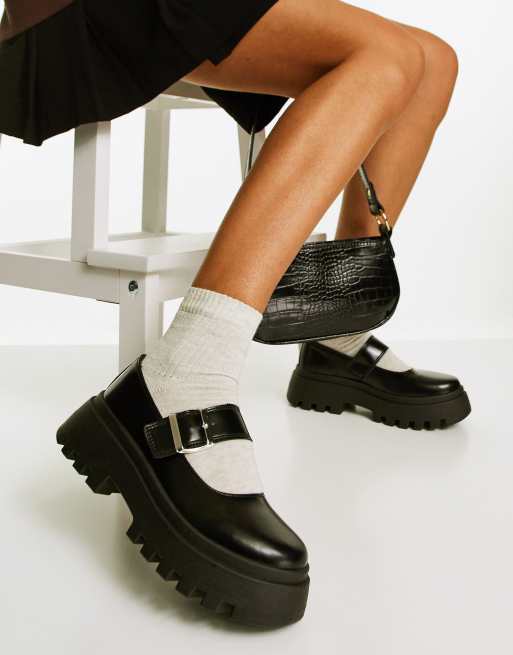 ASOS DESIGN Matchstick chunky mary jane flat shoes in black