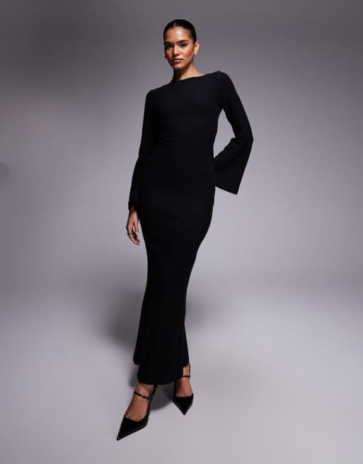 ASOS DESIGN maxi dress with open back and tie detail in black