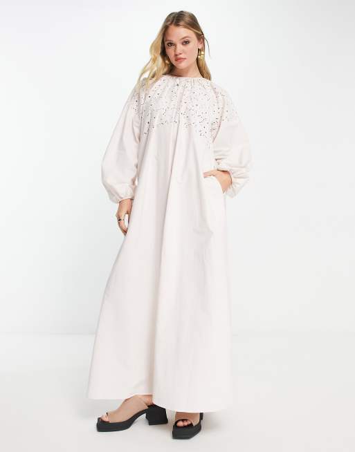 ASOS DESIGN maxi smock dress with cutwork in natural