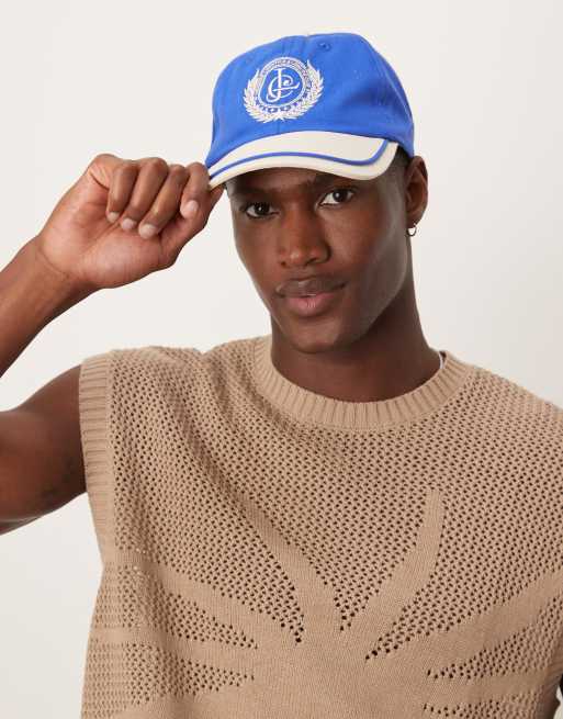 ASOS DESIGN members graphic cap in blue and ecru