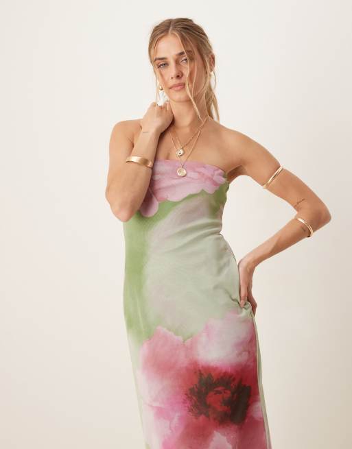 ASOS DESIGN mesh bandeau midi dress in floral blur print