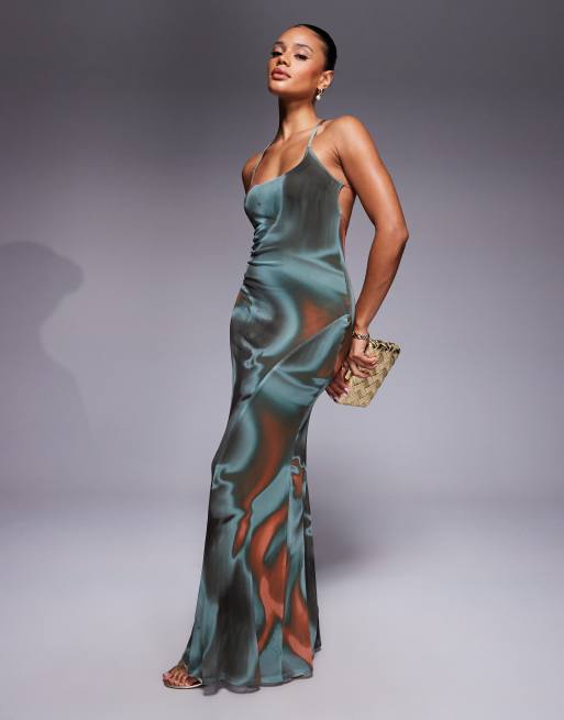 ASOS DESIGN mesh scoop neck cross back maxi dress in abstract print