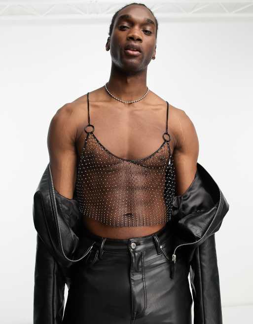 ASOS DESIGN mesh top with crystals in black
