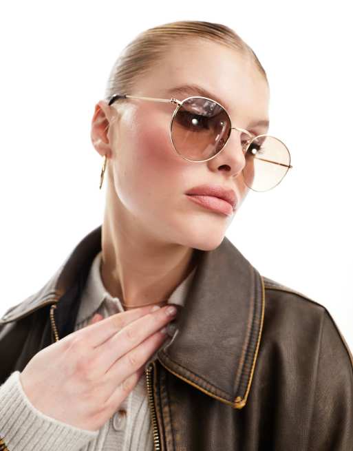ASOS DESIGN metal round sunglasses in gold with light brown lens