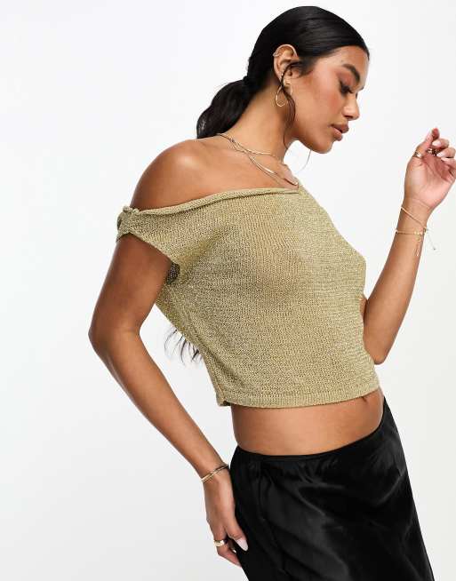 ASOS DESIGN metallic knit asymmetric top in gold