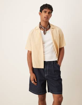 ASOS DESIGN mid length denim jort with double pleats in raw wash