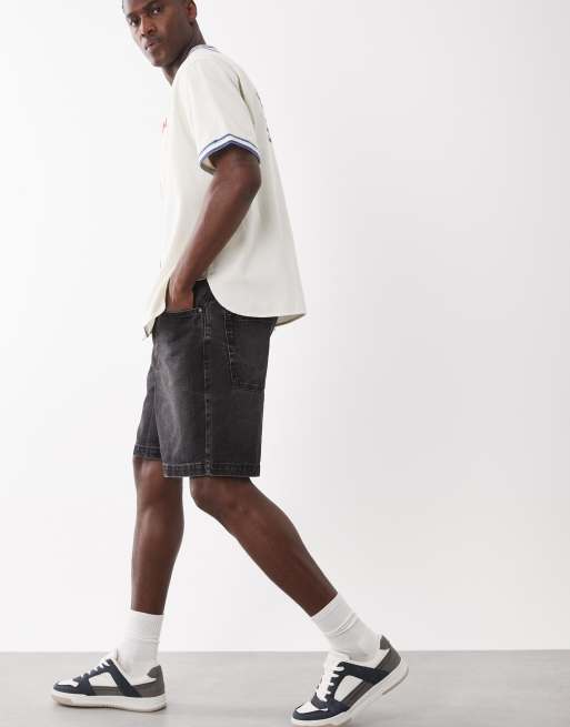 ASOS DESIGN mid length denim jorts in washed black with self tie