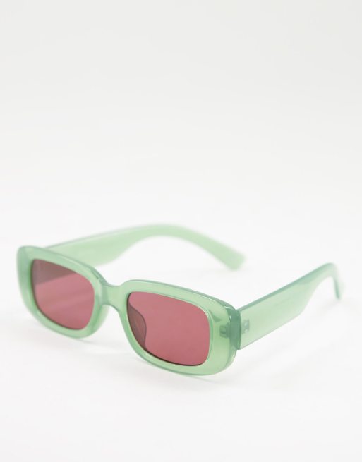 ASOS DESIGN mid rectangle sunglasses in green with tinted lens