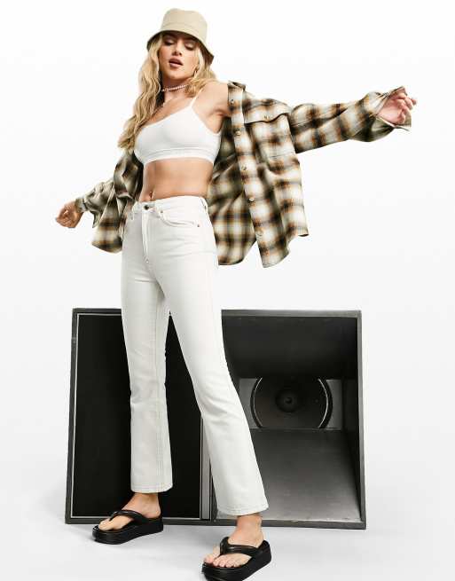 ASOS DESIGN mid rise cotton blend exaggerated flare jeans in ecru - WHITE