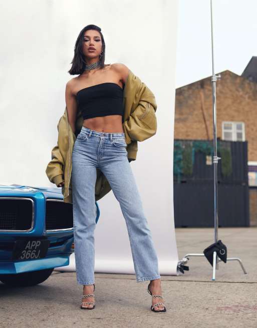 ASOS DESIGN mid rise straight jeans in light blue