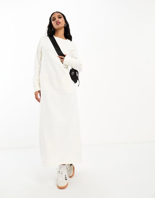 ASOS DESIGN midi sweat dress with pockets in white
