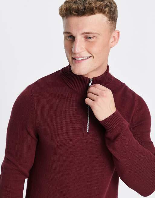 ASOS DESIGN midweight half zip cotton jumper in burgundy