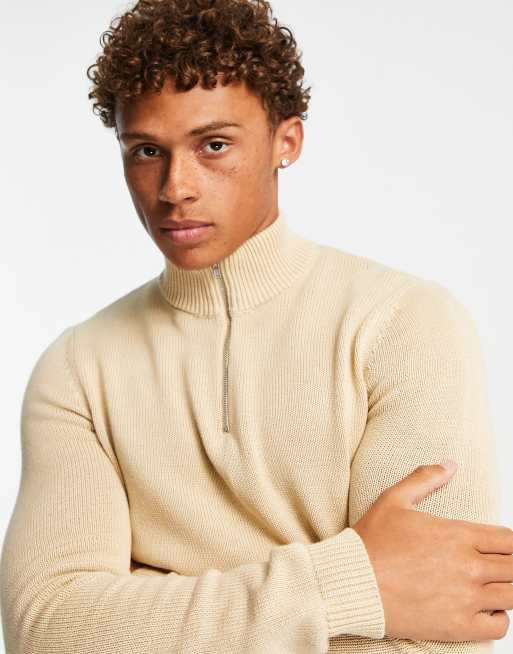ASOS DESIGN midweight half zip cotton jumper in oatmeal