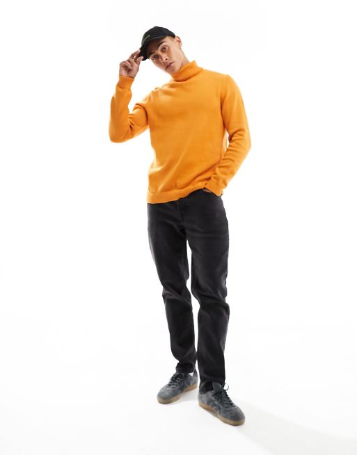 ASOS DESIGN midweight knitted cotton roll neck jumper in orange