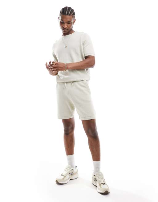 ASOS DESIGN midweight knitted cotton shorts co-ord in stone