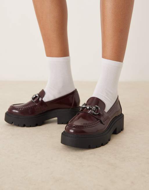 ASOS DESIGN Milan chunky chain detail loafers in burgundy