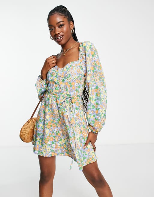 ASOS DESIGN milkmaid corset detail mini dress in floral print