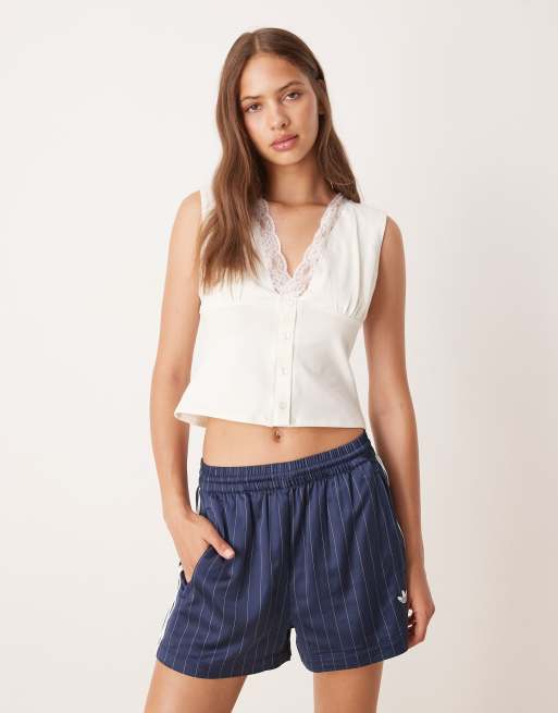 ASOS DESIGN milkmaid plunge button detail top with lace trim in white